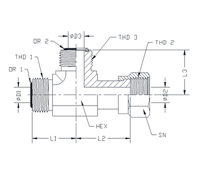 | ITEM | P/N | HEX | THD 1 | THD 2 | THD 3 | L1 | L2 | L3 | D1 | D2 | D3 | OR 1 | OR 2 | SN |