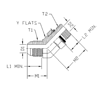 | ITEM | P/N | Y FLATS | T1 | T2 | L1 MIN. | M1 | L3 MIN. | M2 | D1 | D2 |