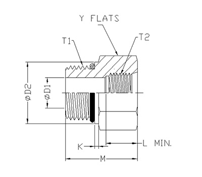 | ITEM | P/N | Y FLATS | T1 | T2 | D1 | D2 | K | L MIN. | M |