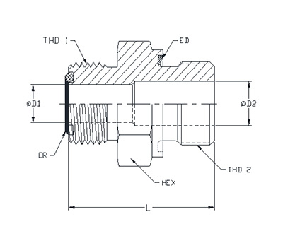 | ITEM | P/N | HEX | THD 1 | THD 2 | L | D1 | D2 | OR | ED |