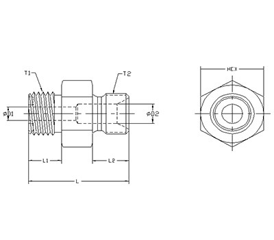 | ITEM | P/N | T1 | T2 | L | L1 | L2 | D1 | D2 | HEX |