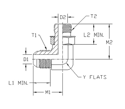 | ITEM | P/N | Y FLATS | T1 | T2 | M1 | M2 | L1 MIN. | L2 MIN. | D1 | D2 |