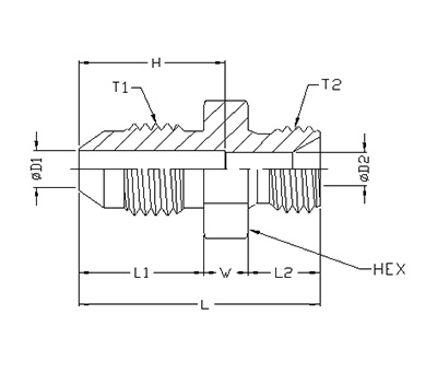 | ITEM | P/N | T1 | T2 | L1 | W | L2 | L | H | D1 | D2 | HEX |