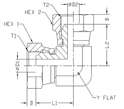| ITEM | P/N | T1 | T2 | L1 | L2 | D1 | D2 | B | HEX 1 | HEX 2 | Y FLATS |
