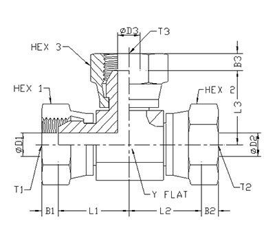 | ITEM | P/N | T1 | T2 | T3 | L1 | L2 | L3 | D1 | D2 | D3 | B | HEX1 | HEX2 | HEX3 | Y FLATS |