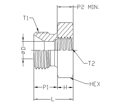| ITEM | P/N | T1 | T2 | P1 | P2 | L | D | H | HEX |