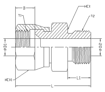 | ITEM | P/N | T1 | T2 | B | D1 | D2 | L1 | L | HEX1 | HEX2 |